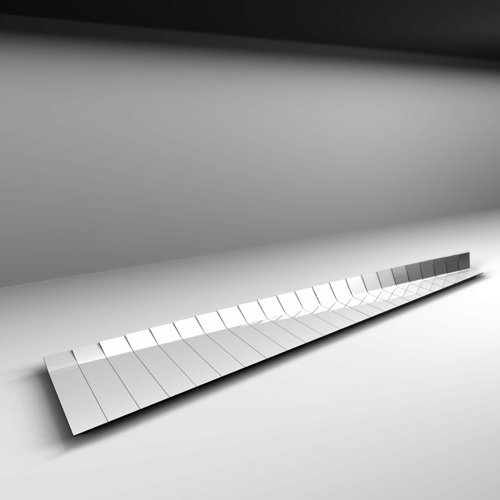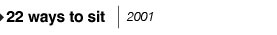 22 ways to sit, a furniture piece which depicts 22 sitting positions from laying down completely to having your back 90 degrees straight. This object not only is a strong visual statement about furniture as art but also an example of how to depict movement through an object, futurism philosophy meets industrial design. 22 ways to sit was exhibited in the main lobby of international contemporary furniture fair in new york in 2003 and received great publicity.