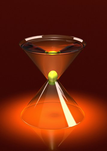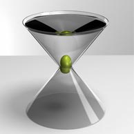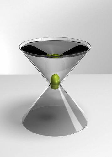 Olive fits in the middle gap and keeps the martini inside the funnel shaped glass. making the olive the most important functional element. unlike ordinary martini's...where the olive is the least essential part.