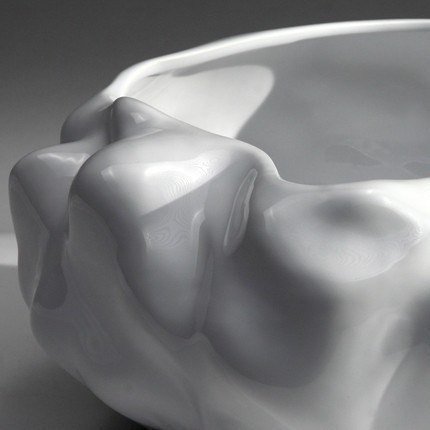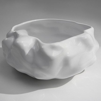 Second skin is a multi function bowl that is designed by placing various fruits in a plastic bag.The form that the plastic bag takes is scanned and materialized, the fruit is removed and the result is the second skin bowl in porcelain.